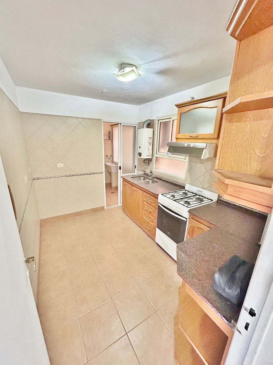 Datos de la propiedad: Te presentamos este Departamento de 3 ambientes en el corazón de Ramos Mejía. La unidad funcional se encuentra emplazada en el piso Nº8 con balcón corrido al frente. El mismo dispone de un amplio living-comedor al ingresar con estufa, cocina separada con desarrollo de muebles bajo mesada de madera, mesada de granito, múltiples alacenas, artefacto de cocina a gas, calefón, extractor y un lavadero cubierto separado. A continuación, un pasillo de distribución que conecta con dos dormitorios con piso parquet, placard en cada uno de ellos y un baño completo. No se aceptan mascotas.